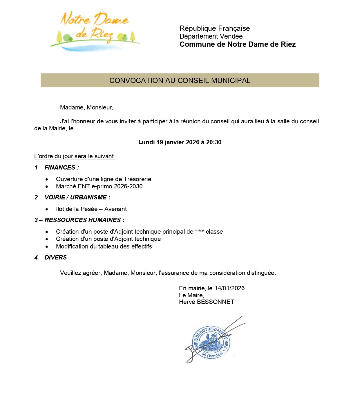 Au nom du conseil municipal, je vous souhaite à toutes et à tous de bonnes fêtes de fin d’année et mes meilleurs vœux de bonheur et de réussite pour l’année 2026.