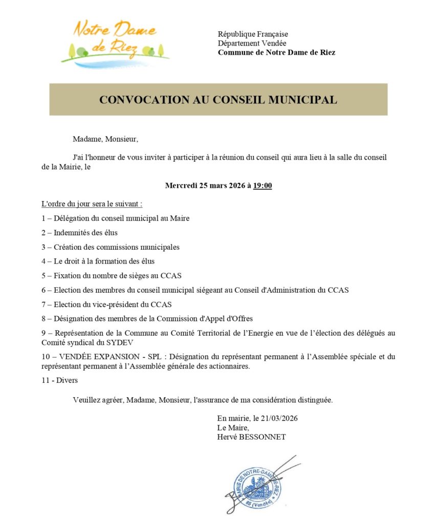 Je vous donne rendez-vous le samedi 10 janvier 2026 à 18h30, pour la Cérémonie des Vœux du Maire. Le matin à 10h30, j’invite tous les nouveaux arrivants pour une présentation de la commune, qui sera suivie d’un moment convivial.