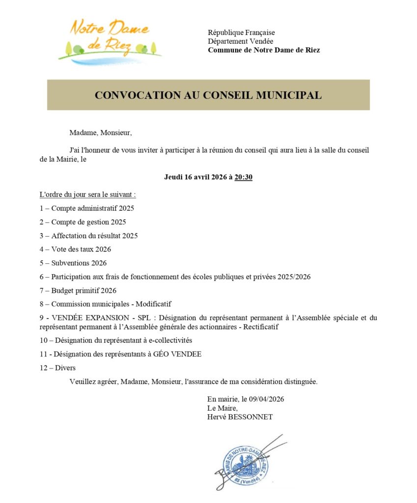 Je remercie les anciens conseillers municipaux, les anciens maires et leurs conseils, les agents municipaux, les associations et leurs présidents et membres bénévoles, ainsi que vous tous, pour tout le travail qui a été fait lors de ces dernières décennies et qui a permis le développement de notre belle commune de Notre Dame de Riez.